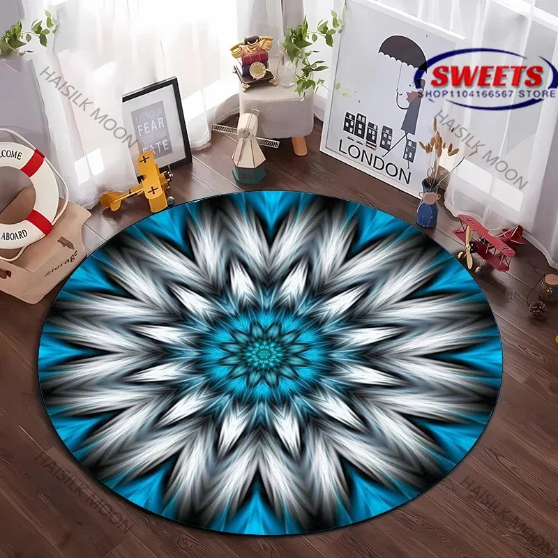 Navak Carpet 1PC Mandala Flower Pattern Round Carpet for Living Room Bedroom Picnic, Doormat Floor All Seasons Mat Modern Decorative Rug Gift