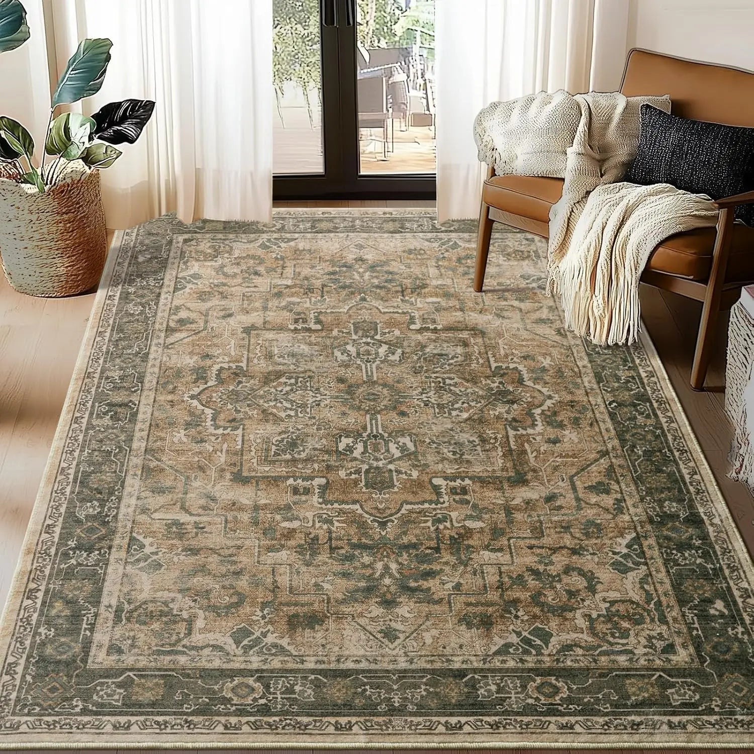 Navak Carpet Crystal velvet carpetVintage DistressedArea Rugs for Living Room Bedroom Non Slip Washable, Medallion Pattern Printed Low